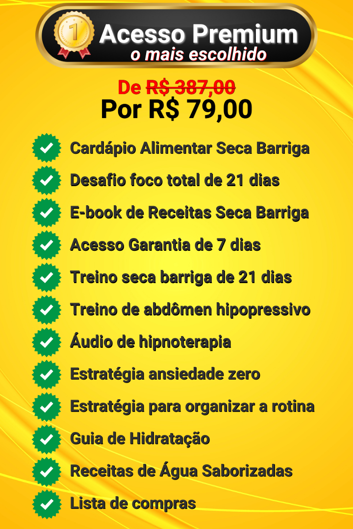 Aviso legal importante sobre os riscos e resultados típicos. Como qualquer outro programa de exercícios, você assume certos riscos para a sua saúde e segurança durante o Protocolo Seca Barriga, consulte um médico antes de realizar atividades físicas.
